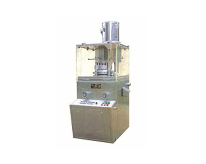 本机用以将各种颗粒状原料压制成圆片状,还能压制成各种几何形状的异形片。适合于小批量生产。压片时转盘速度、物料的充填深度,压片厚度均可调节。机上的机械缓冲装置可避免过载而引起的机件损坏。机体一侧配有吸粉箱,通过吸咀可吸取机器运转时产生的粉尘,避免粘结堵塞,并可回收原料重新使用。